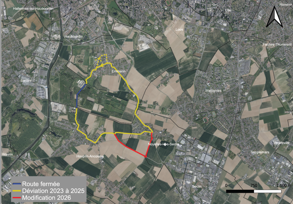Le dispositif mis en place cette année est le même que celui des années précédentes. À noter toutefois que la déviation sera légèrement modifiée au niveau de Noyelles-lès-Seclin afin d’orienter les automobilistes sur une voie plus structurante et préserver la tranquillité du centre du village (voir le plan ci-dessous).