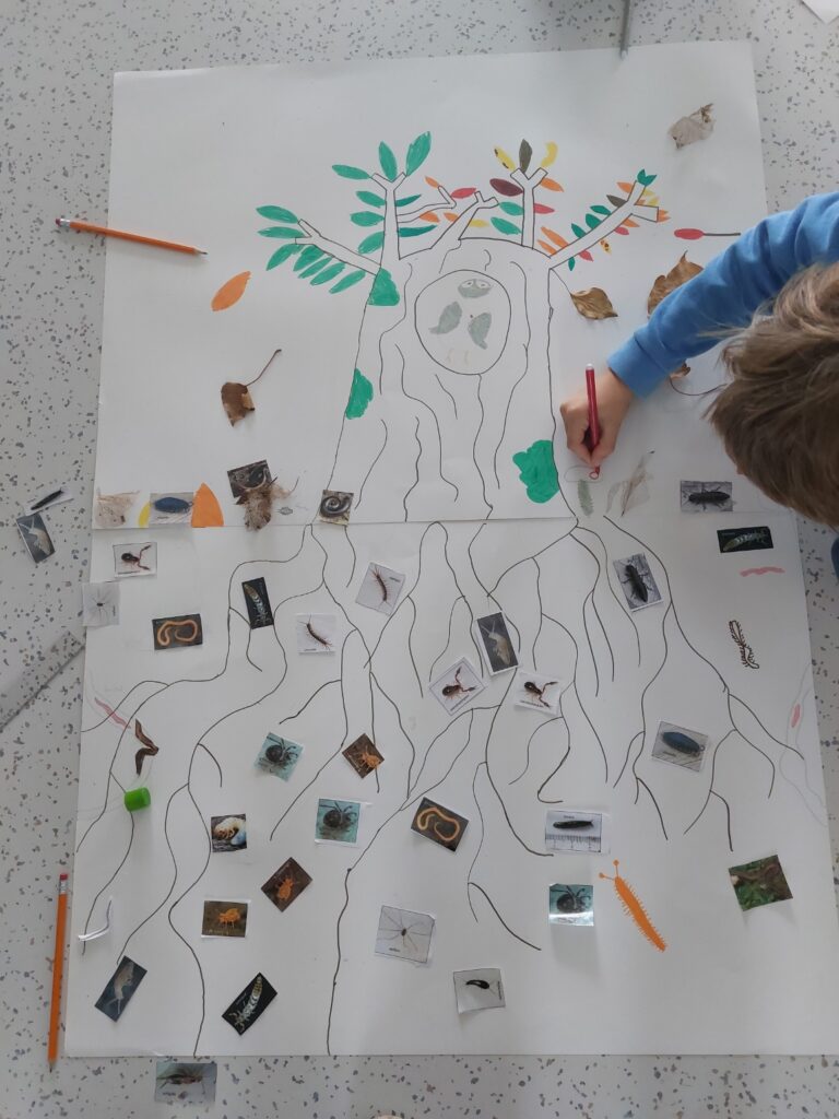 La séance suivante du 8 octobre, a été consacrée à l’observation à la loupe des petits animaux du sol et à comprendre leurs rôles dans le cycle de la matière par la réalisation d’un poster pour l’afficher dans l’école.